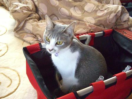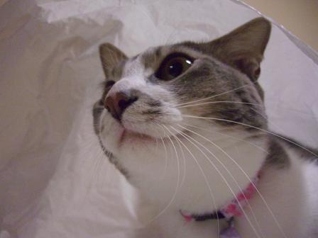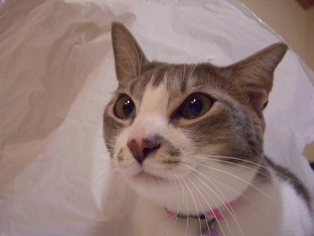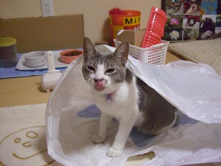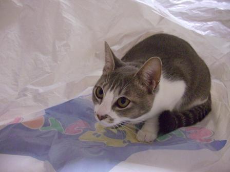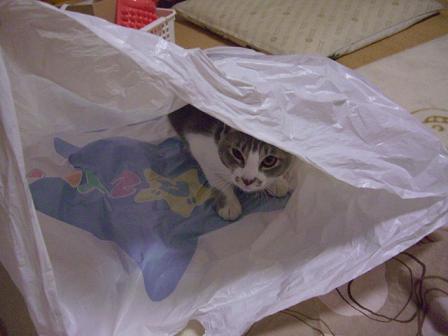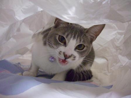 袋をたたもうとしていたら袋好きの猫がやってきました。